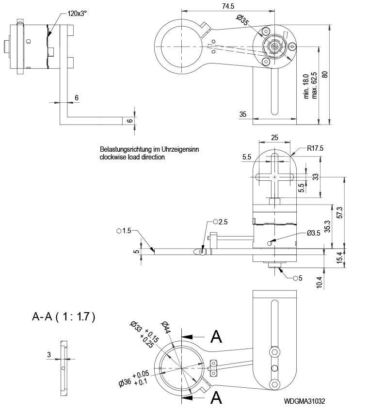 Belastungsrichtung gegen Uhrzeigersinn