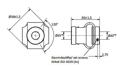 Doppelschlaufenkupplung: Ø d1 = 6 mm, Ø d2 = 6 mm